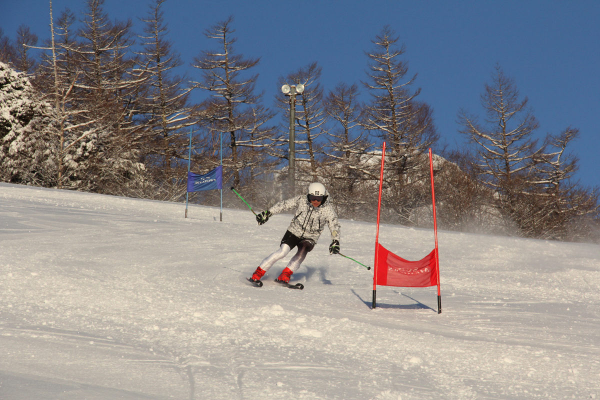全長1,200mのAコースで早朝トレーニング!!GSポールセット約35旗門で試合さながらの練習ができます。